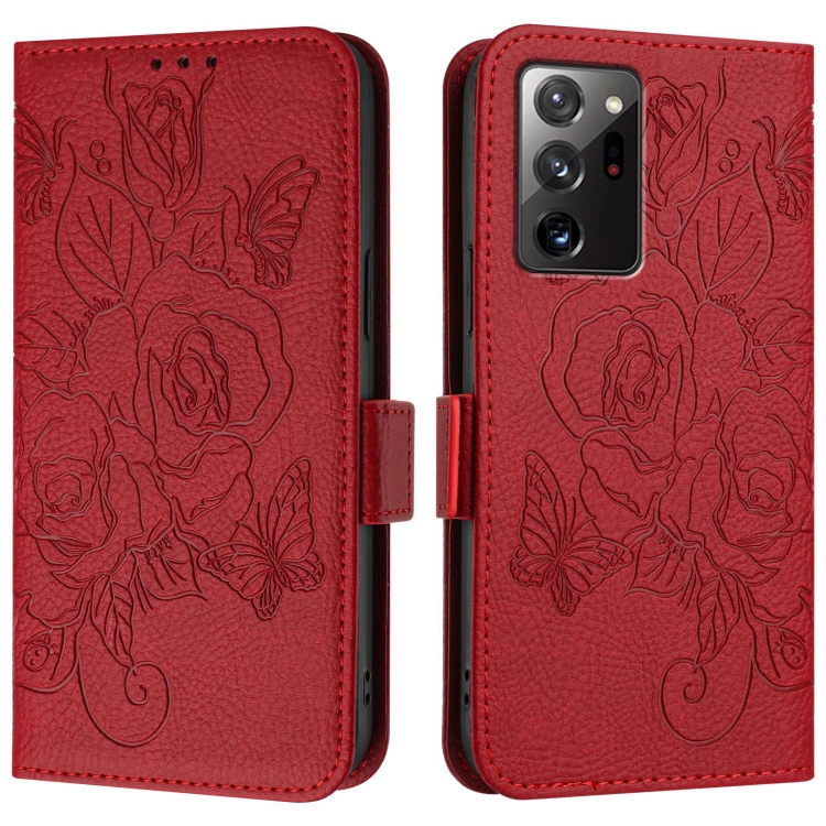 Estuche para Teléfono Samsung Galaxy Note20 Ultra Cuero Antirrobo Rfid Rosa en Relieve (Rojo)