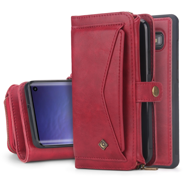 Funda de Cuero Samsung Galaxy S10 con Billetera y Cremallera Multifuncional (Rojo)