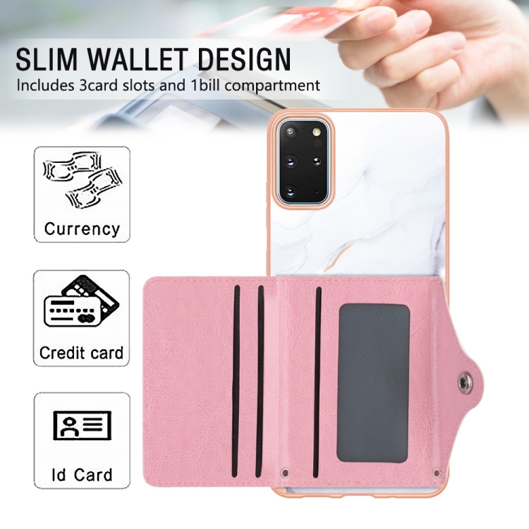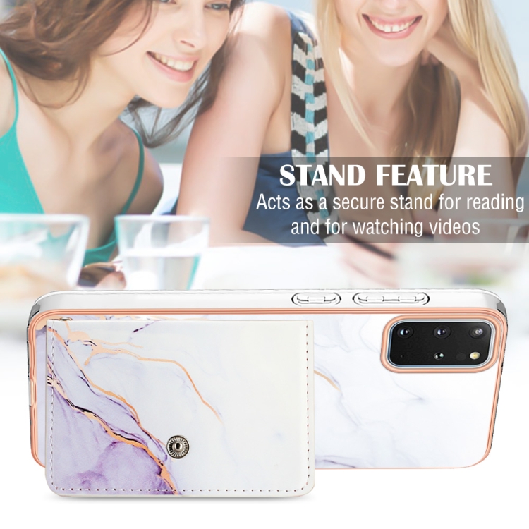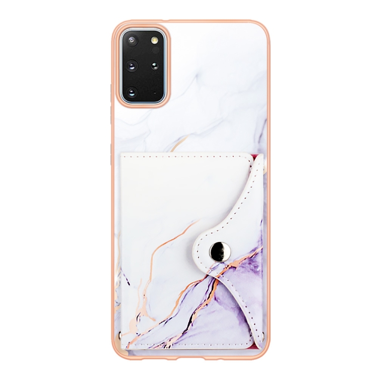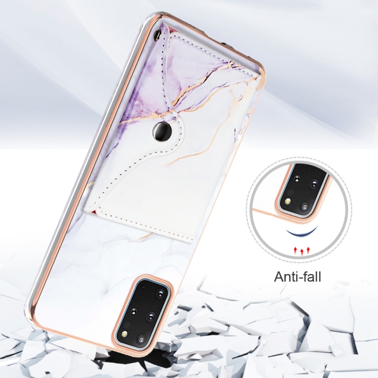 Estuche para Teléfono Samsung Galaxy S20 con Ranura para Tarjeta y Patrón Mármol (Blanco y Morado)