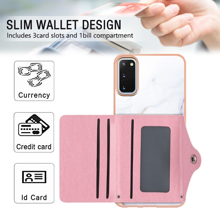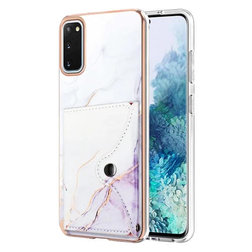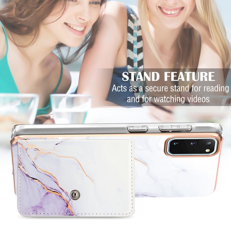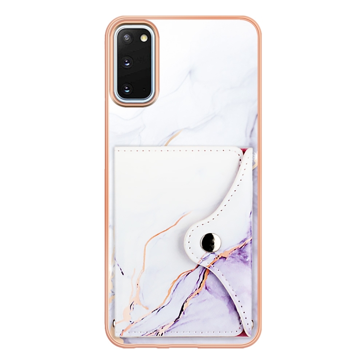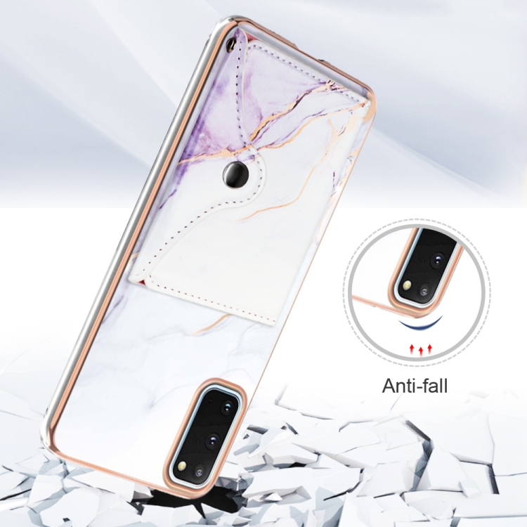 Estuche para Teléfono Samsung Galaxy S20 con Ranura para Tarjeta Imd Patrón de Mármol (Blanco y Morado)