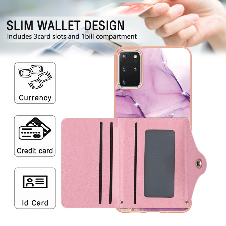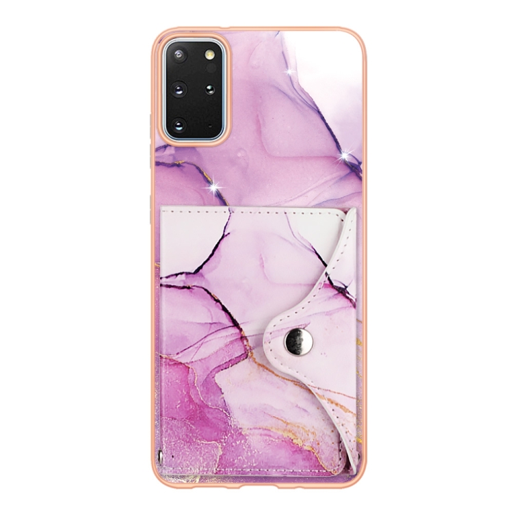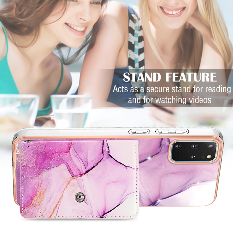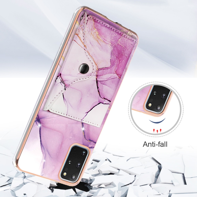 Estuche para Teléfono Samsung Galaxy S20 con Ranura para Tarjeta IMD con Patrón de Mármol (Oro Rosa Púrpura)