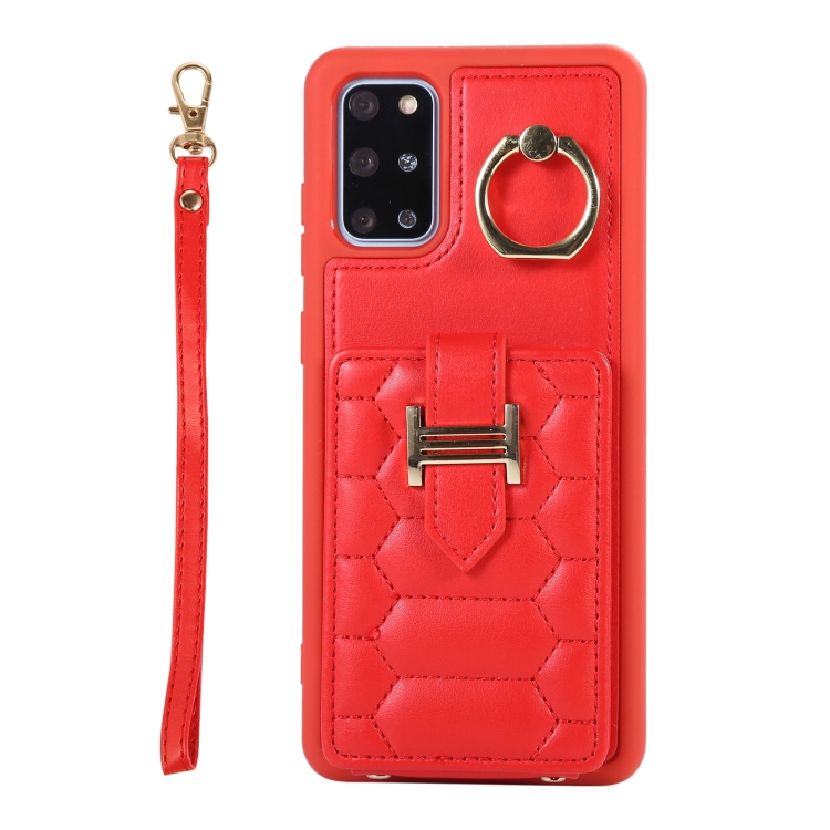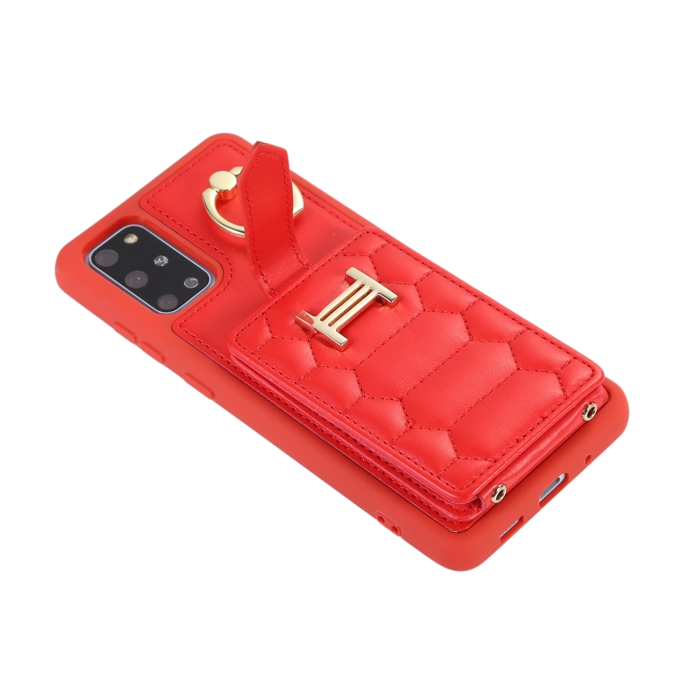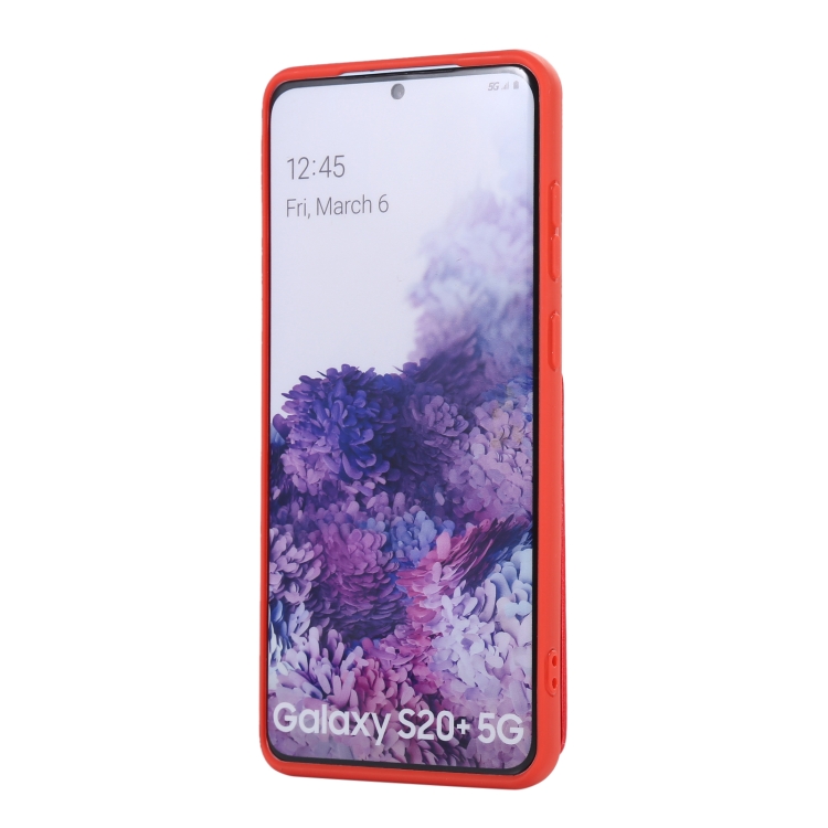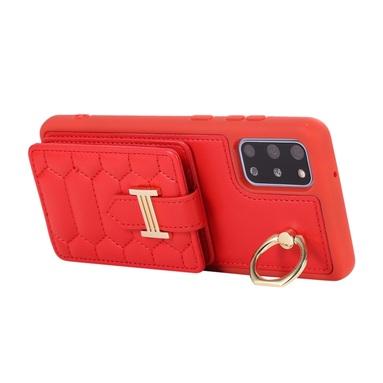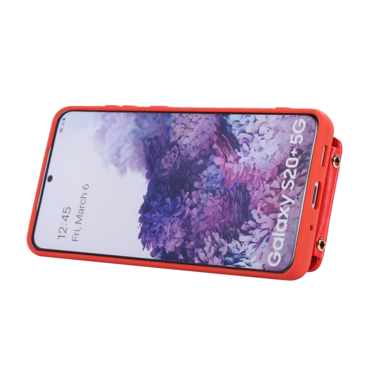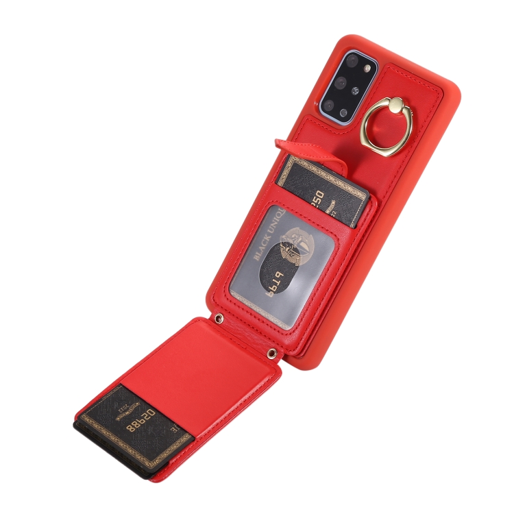 Estuche para Teléfono Samsung Galaxy S20+ con Soporte de Anillo y Bolsa de Tarjeta Vertical con Cordón Doble (Rojo)