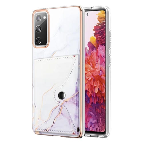 Estuche para Teléfono Samsung Galaxy S20 FE 5G con Ranura para Tarjeta IMD Patrón Mármol (Blanco y Morado)