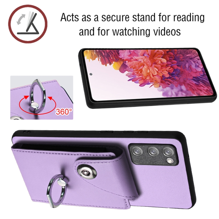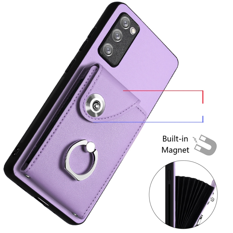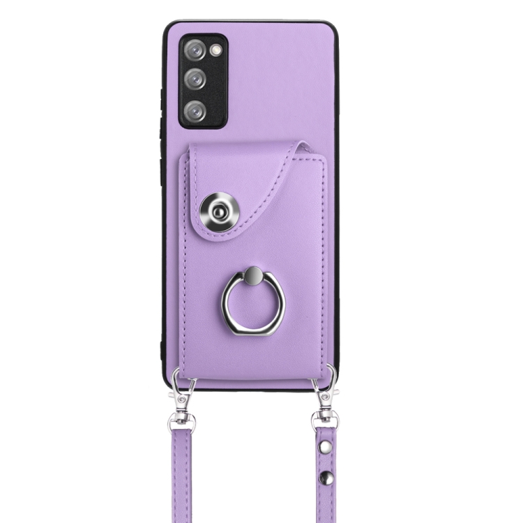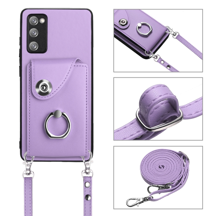 Funda para Teléfono Samsung Galaxy S20 FE con Soporte para Anillo y Bolsa para Tarjeta con Cordón Largo (Púrpura)