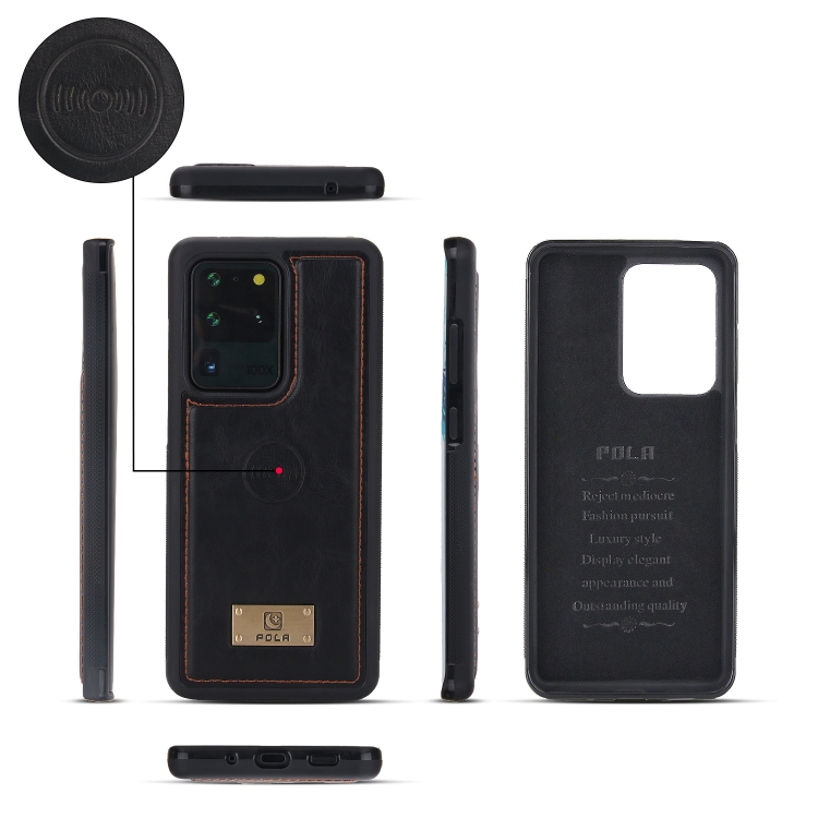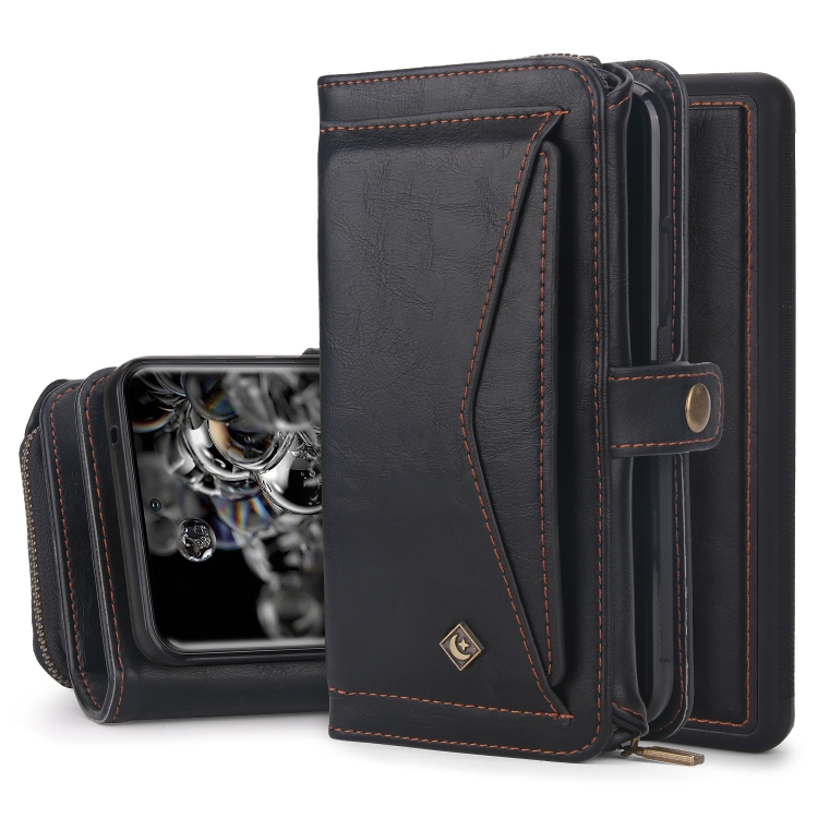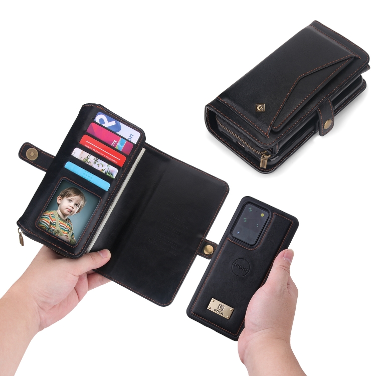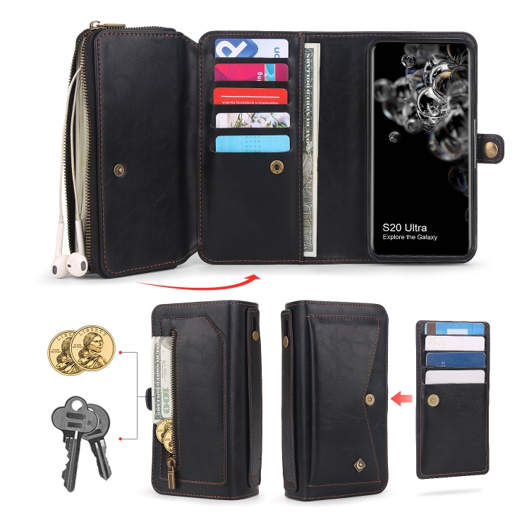 Funda de Cuero Samsung Galaxy S20 Ultra con Billetera y Cremallera Multifuncional (Negro)