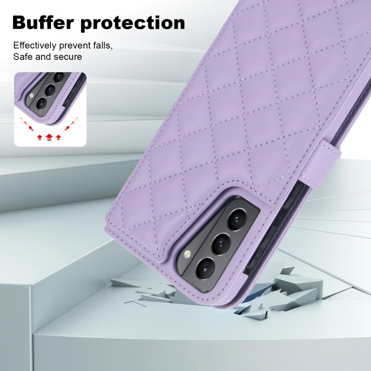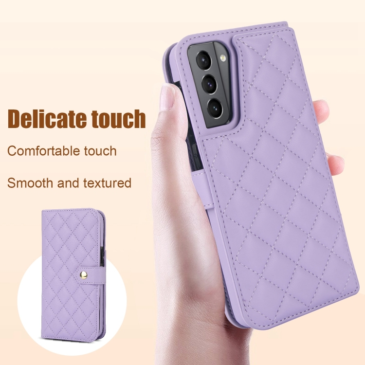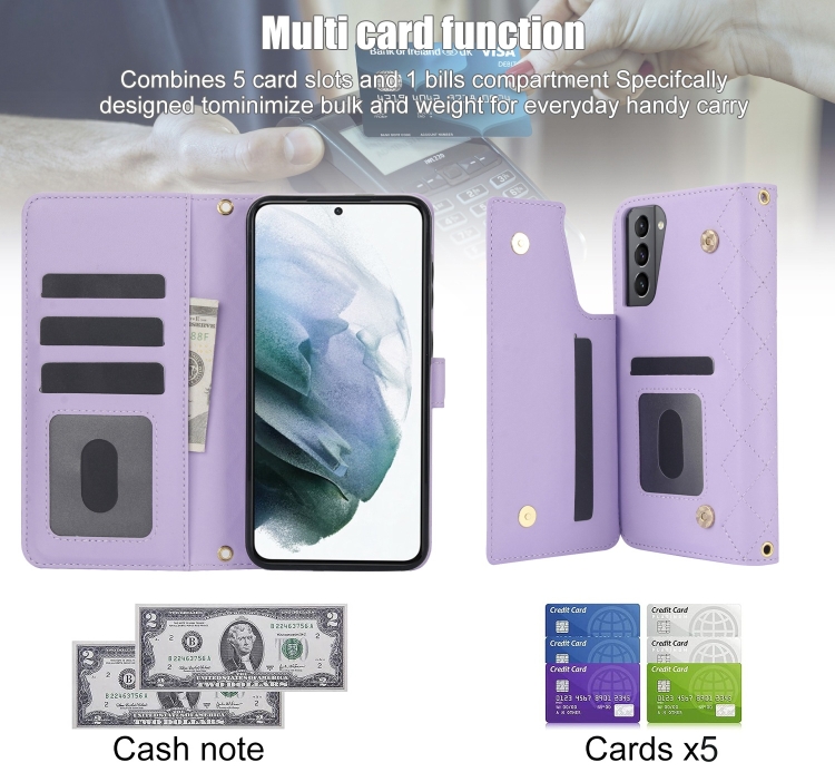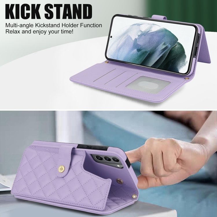 Estuche para Teléfono Samsung Galaxy S21 5G Crossbody Cuero Rómbico Multifunción (Púrpura)