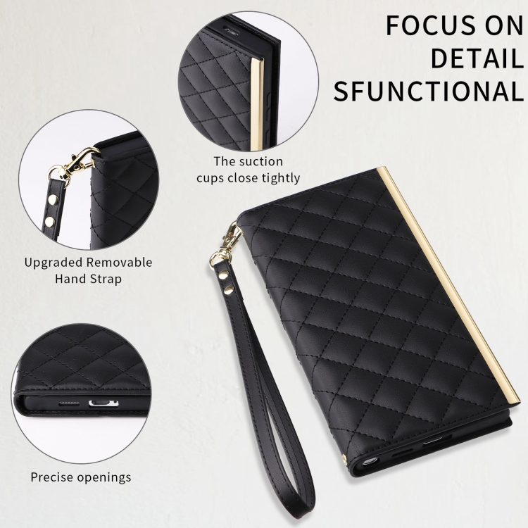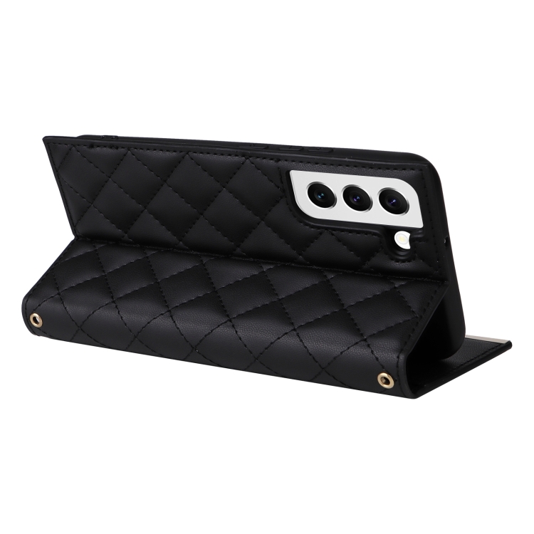 Estuche para Teléfono Samsung Galaxy S21 5G Cuero Ventosa Romboidal Cruzada (Negro)