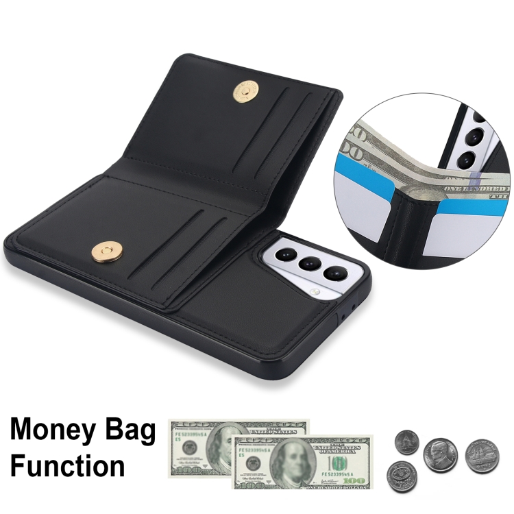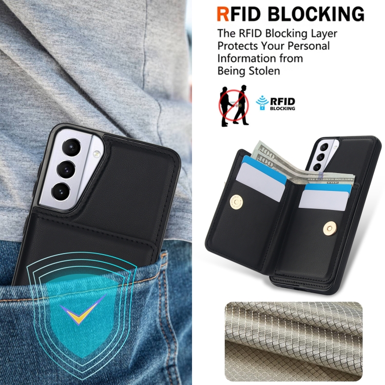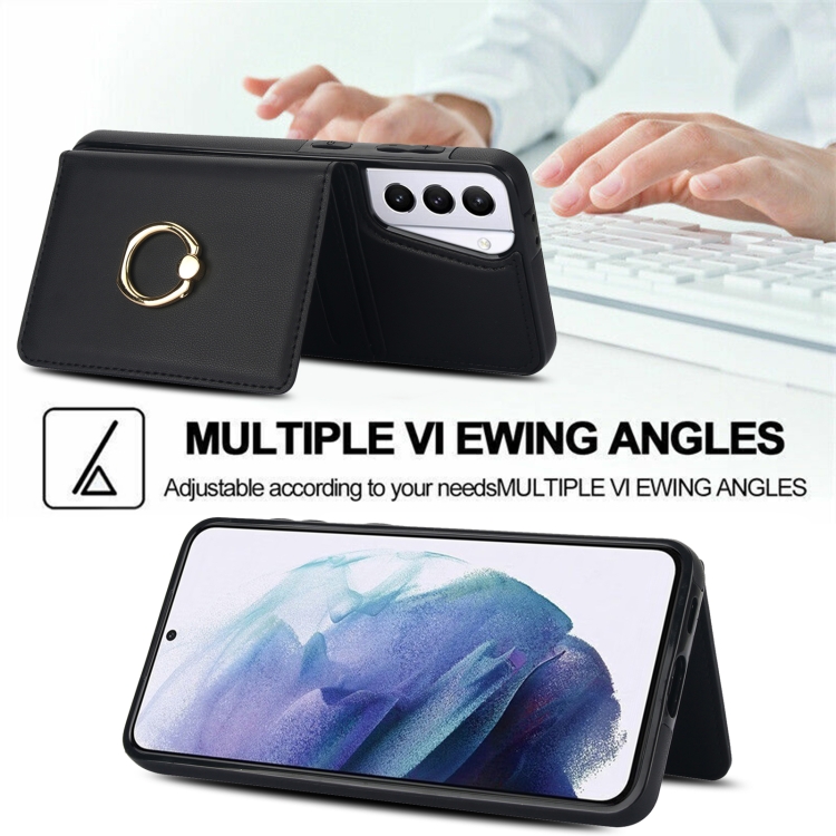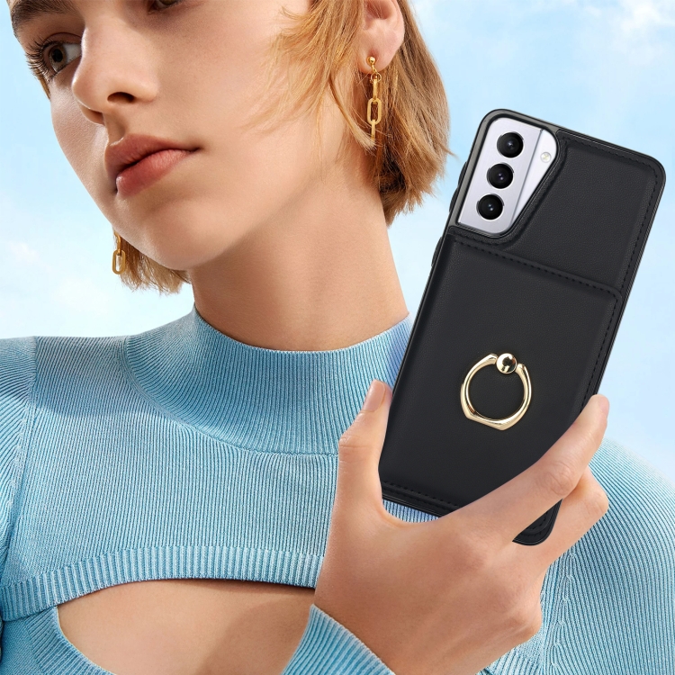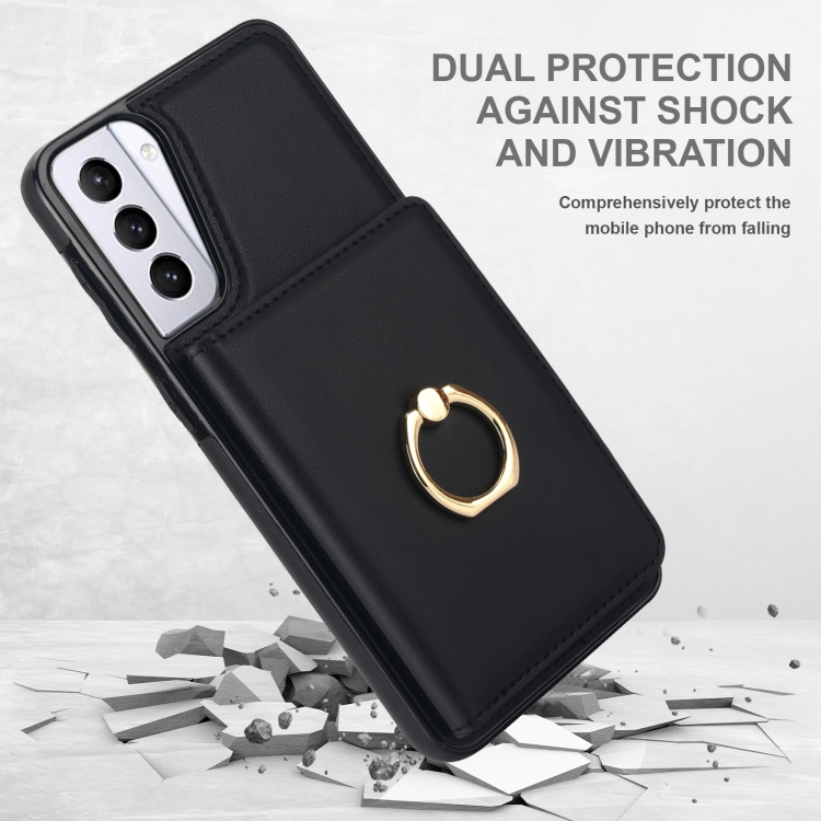 Estuche para teléfono Samsung Galaxy S21 + 5G con soporte para anillo y tarjeta Rfid antirrobo (Negro)