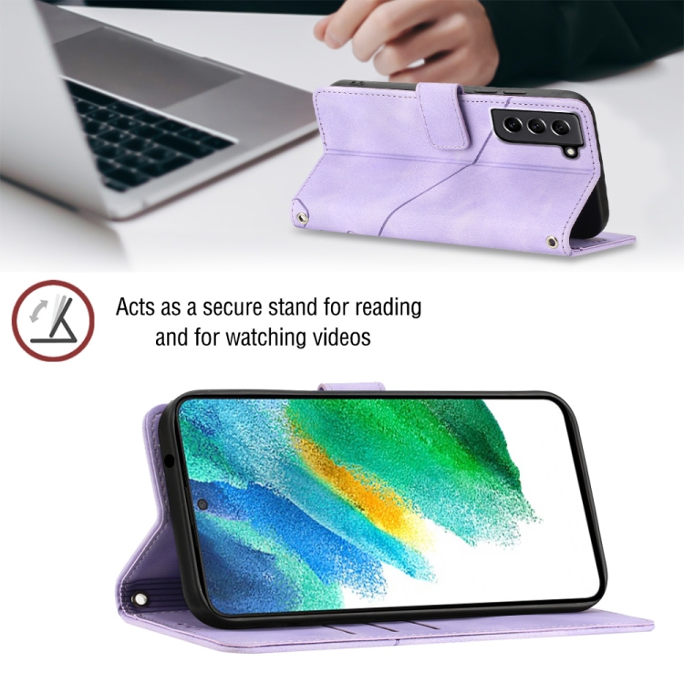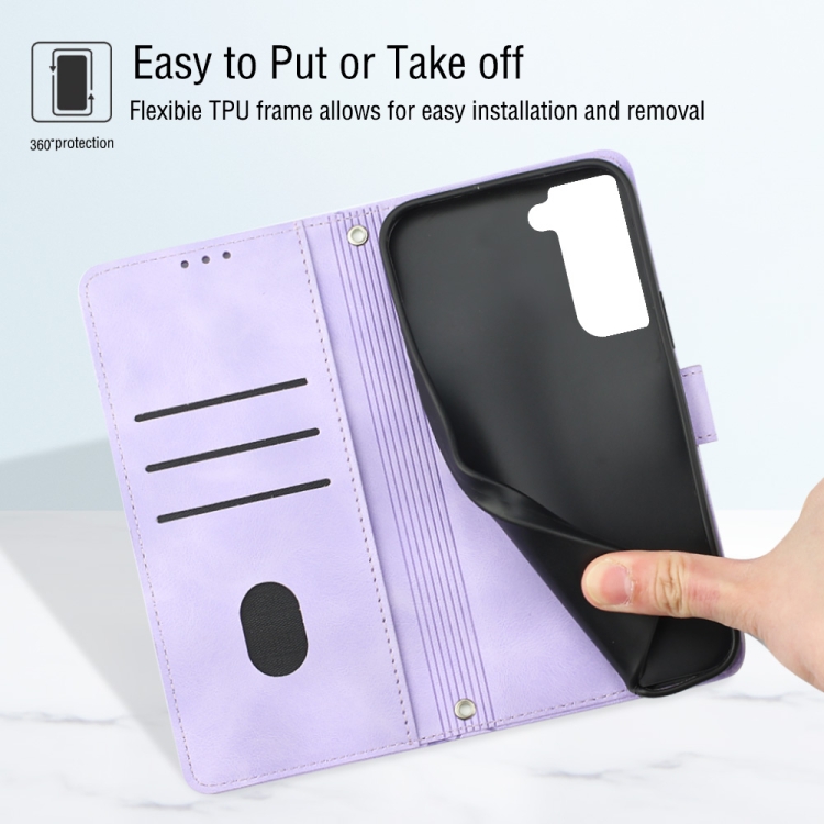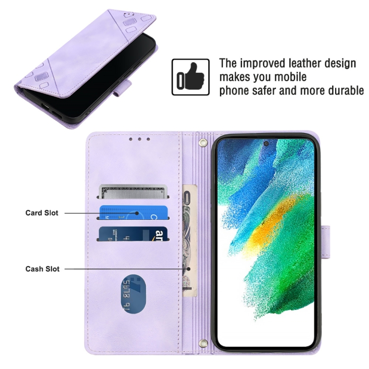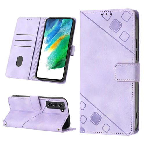 Estuche para Teléfono Samsung Galaxy S21 FE 5G Cuero En Relieve con Tacto de Piel (Púrpura Claro)