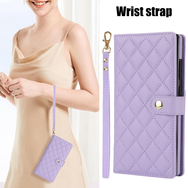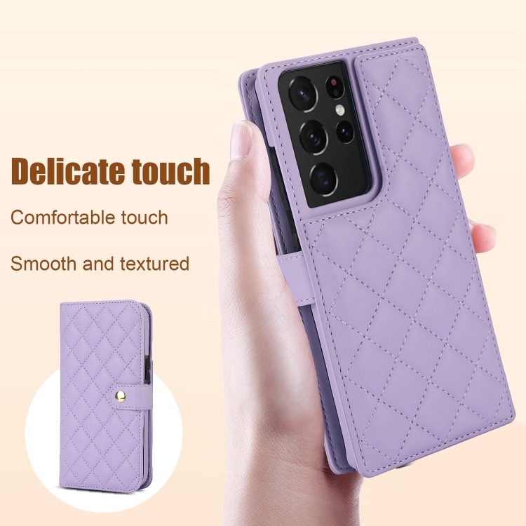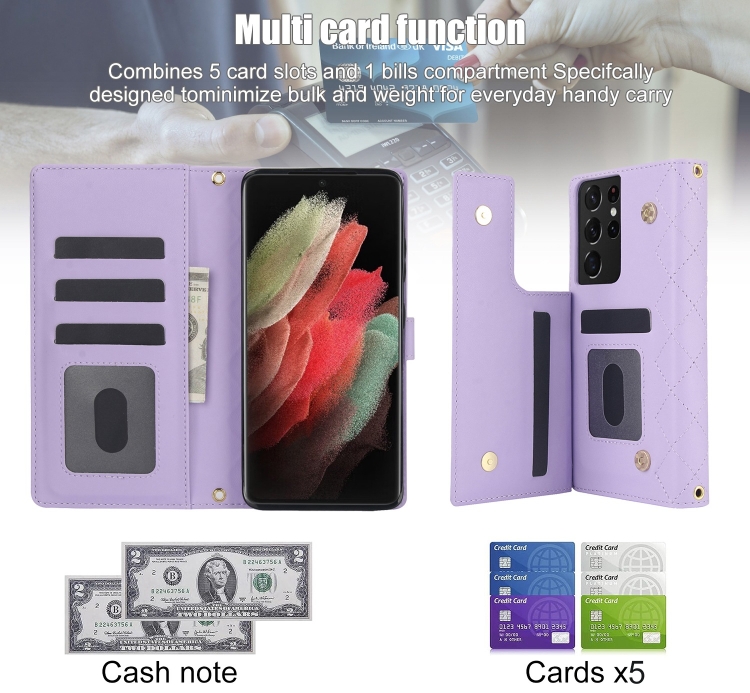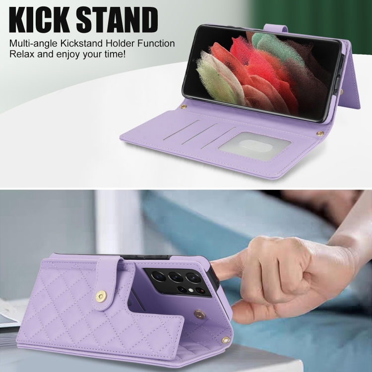 Estuche para Teléfono Samsung Galaxy S21 Ultra 5G Crossbody Cuero Rómbico Multifunción (Púrpura)