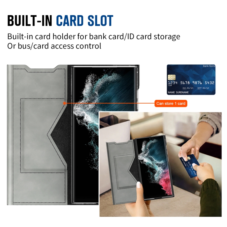 Funda Magnética de Cuero para Samsung Galaxy S22 + 5G con Textura de Napa y Soporte (Gris)