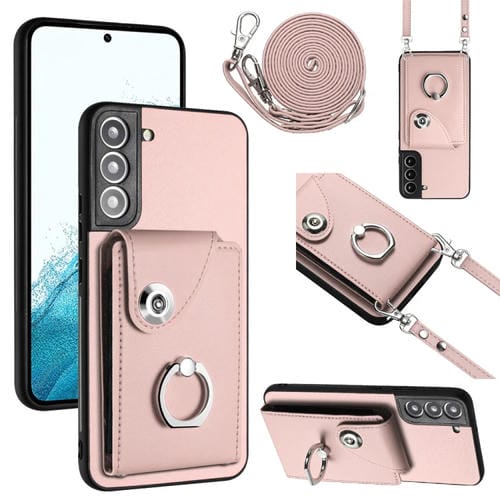 Funda para Teléfono Samsung Galaxy S22 + 5G con Soporte para Anillo y Bolsa para Tarjeta con Cordón Largo (Rosa)