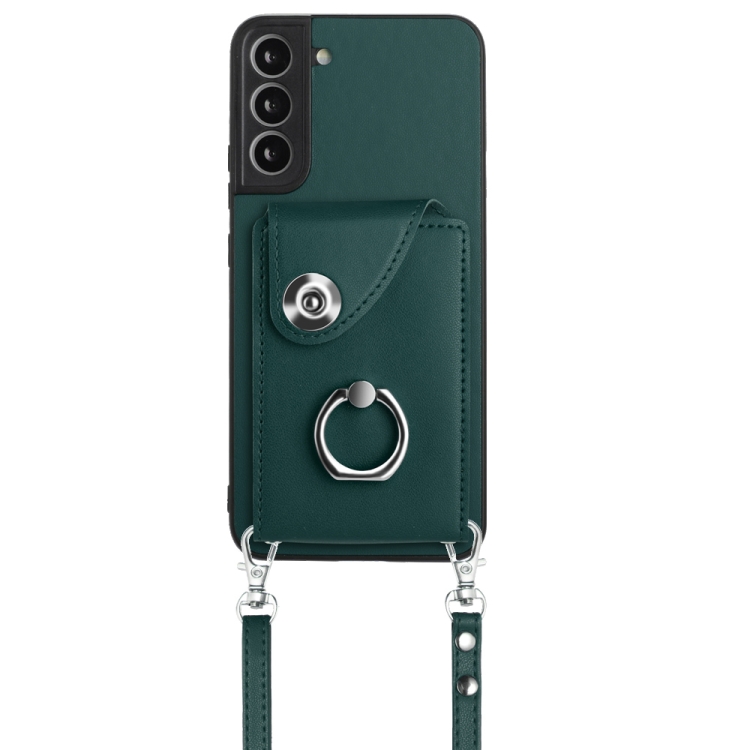 Funda para Teléfono Samsung Galaxy S22 + 5G con Soporte para Anillo y Bolsa para Tarjeta con Cordón Largo (Verde)