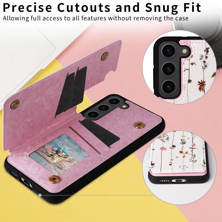 Estuche Antirrobo Rfid para Samsung Galaxy S23 5G con Doble Hebilla Impresa (Mundo de Flores Secas)
