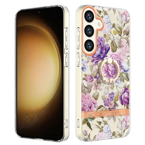 Estuche para Teléfono Samsung Galaxy S24 5G Serie Flores y Plantas Imd TPU con Soporte para Anillo (Peonía Púrpura)