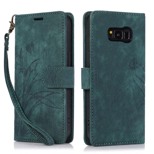 Funda para Teléfono Samsung Galaxy S8 Cuero con Relieve Mariposa Orquídea (Verde)