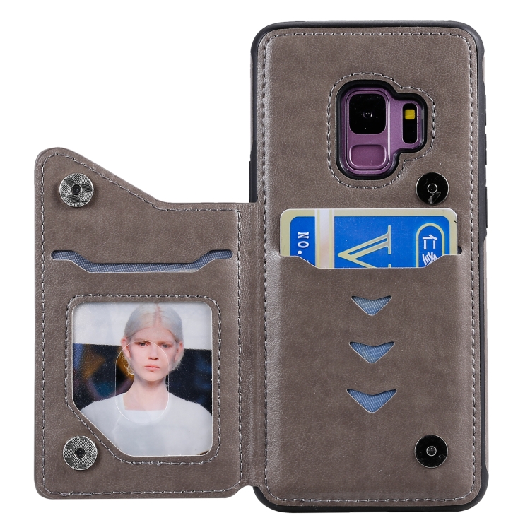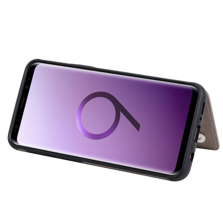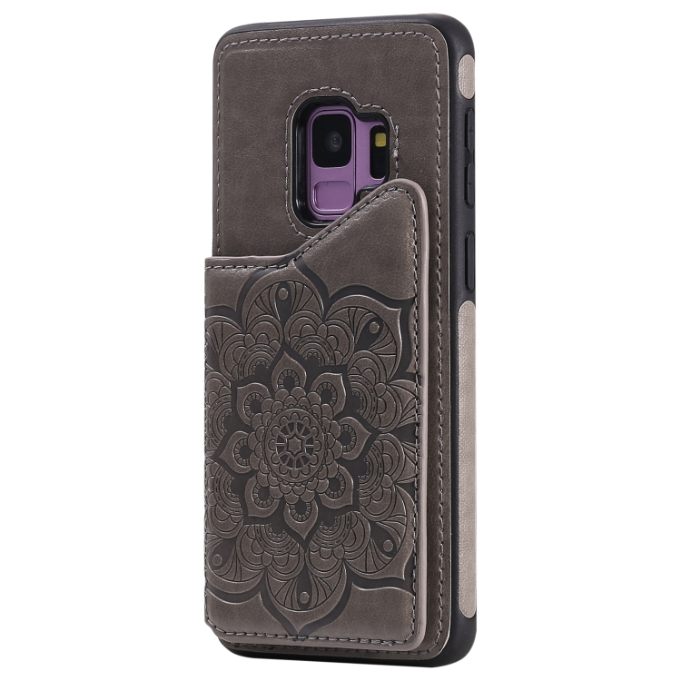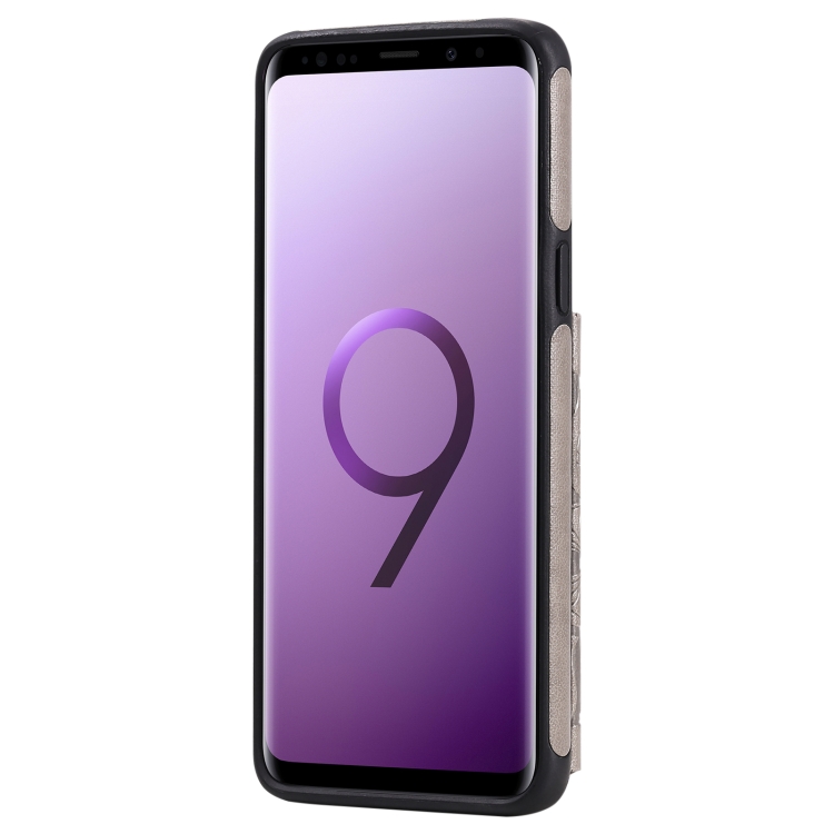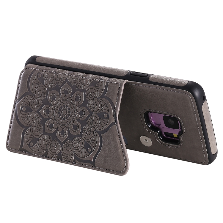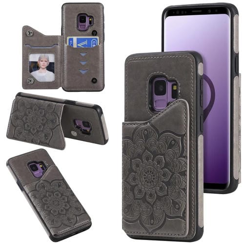 Estuche protector Samsung Galaxy S9 Flower patrón estampado en relieve a prueba de golpes con soporte y ranuras para tarjetas (Gris)