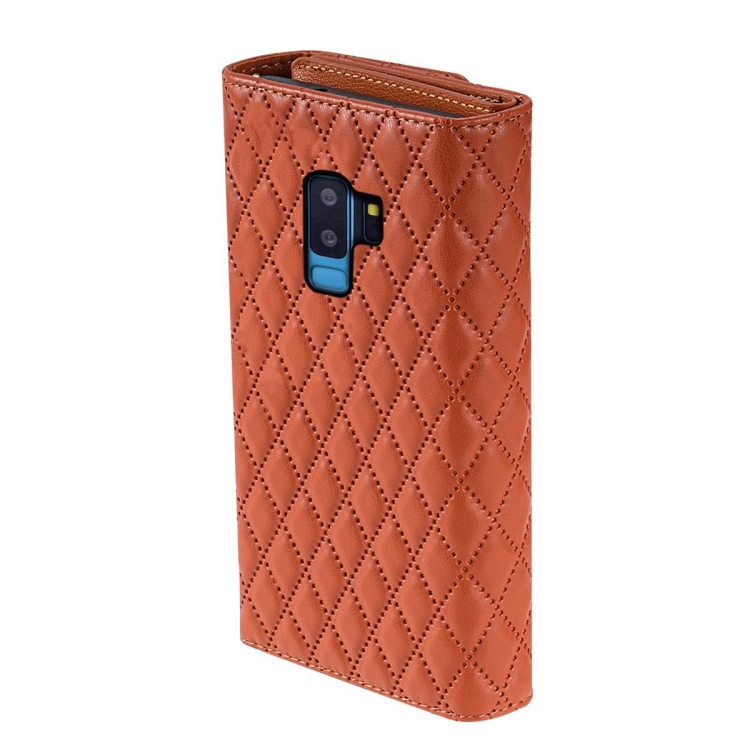 Funda para Teléfono Samsung Galaxy S9 Cuero Rómbico con Billetera MultiTarjeta con Cremallera (Marrón)