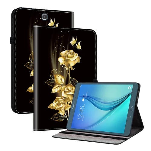 Funda para Tablet Samsung Galaxy Tab A 9.7 T550 T555 P550 Cuero Pintado Textura Cristal (Mariposa Dorada Rosa)