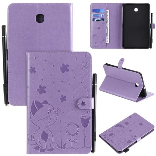 Pour Samsung Galaxy Tab A8.0 (2018) T387 Cat Bee Motif en relief Table antichoc PC Étui de protection en cuir à rabat horizontal avec support et fentes pour cartes et portefeuille et fente pour stylo (violet)