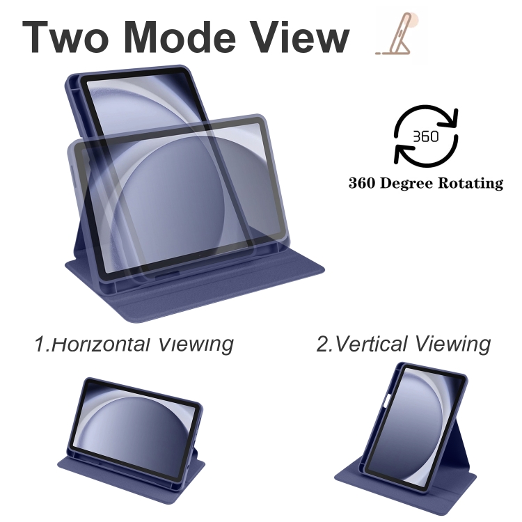 Funda de Cuero para Samsung Galaxy Tab A9 con Rotación 360 Grados para Tablet (Azul Oscuro)
