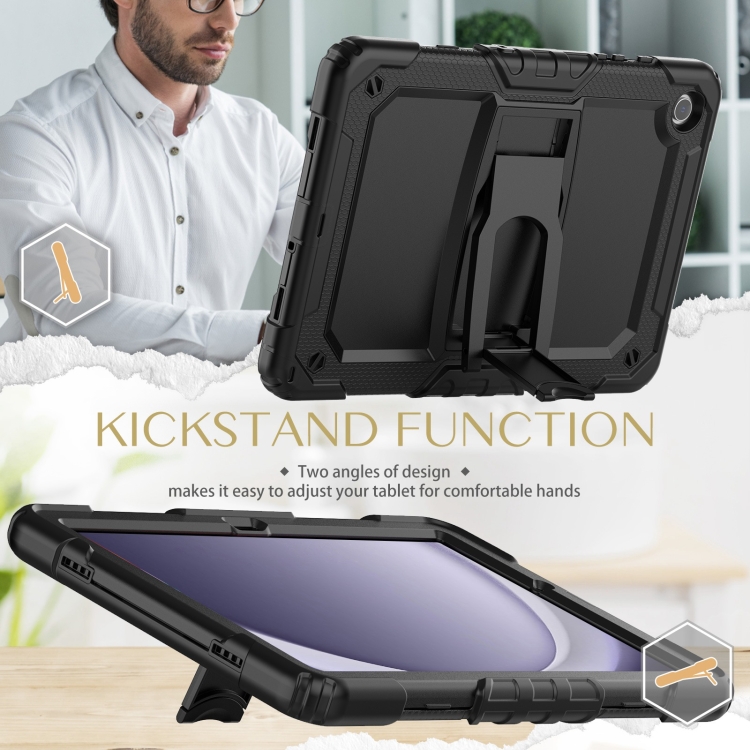 Funda silicona para Samsung Galaxy Tab A9 Hydric PC con correa y soporte (Negro)