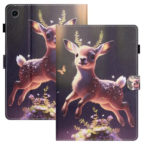 Funda para Tablet Samsung Galaxy Tab A9 PU Inteligente con Costura Dibujo Coloreado y Función Reposo / Activación (Ciervo)