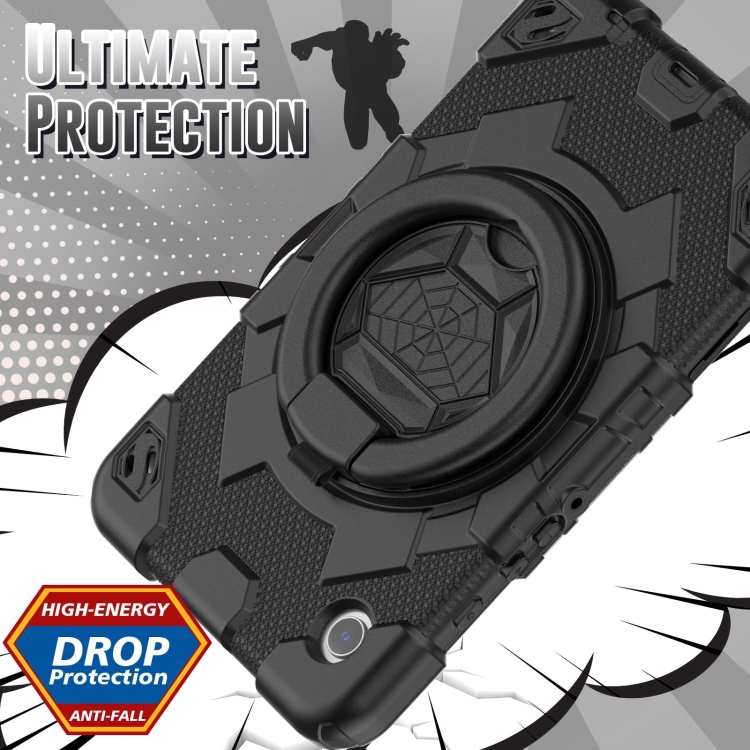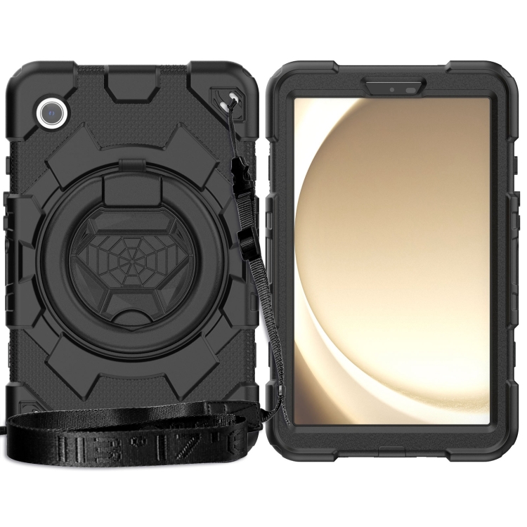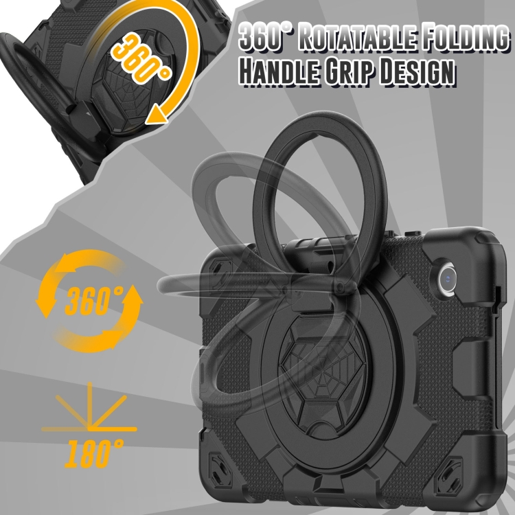 Funda híbrida para Samsung Galaxy Tab A9 Spider con asa rotatoria para Tablet PC de silicona (Negro)