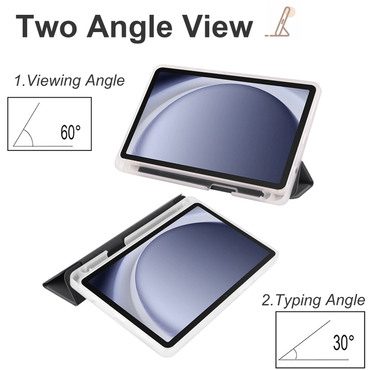 Funda para Tablet Samsung Galaxy Tab A9 X110 Cuero TPU Transparente Panal 3 Pliegues Ranura Bolígrafo (Negro)
