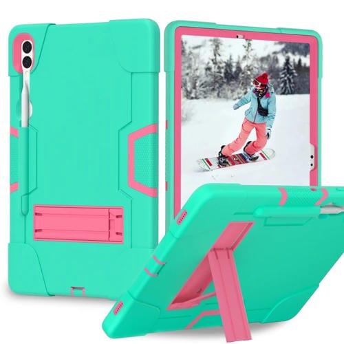 Pour Samsung Galaxy Tab S9 + Étui pour tablette PC en silicone de couleur contrastée avec support (vert menthe + rouge rose)