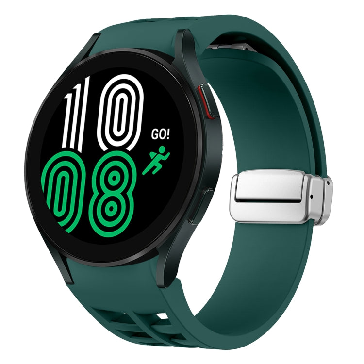 Correa de Silicona para Samsung Galaxy Watch 4 40/44mm Richard con Hebilla Plateada Plegable Magnética (Verde Oscuro)