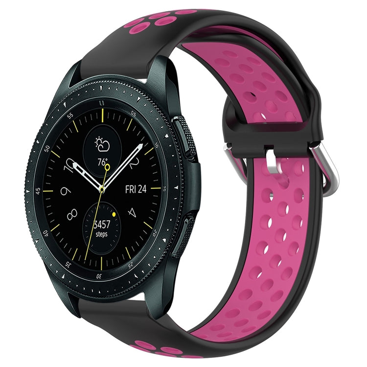 Banda de Reloj para Samsung Galaxy Watch 42mm 20mm silicona deportiva perforada (Negro + Rojo Rosa)