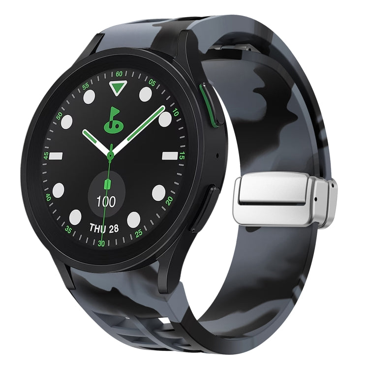 Correa de Silicona para Samsung Galaxy Watch 5 Pro Golf Edition Richard Correa con Hebilla Plateada Plegable Magnética (Camuflaje Gris Negro)