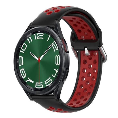 Banda de Reloj de Silicona Deportiva para Samsung Galaxy Watch 6 Classic 47mm 20mm (Negro + Rojo)