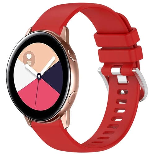 Correa de Silicona para Samsung Galaxy Watch Active y Active 2 con Hebilla Plateada (Rojo)