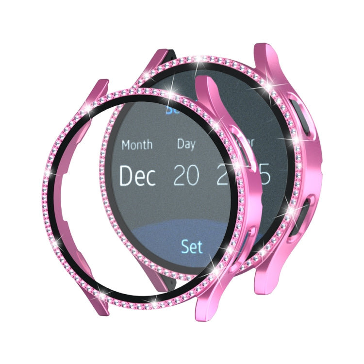 Pour Samsung Galaxy Watch4 40 mm à une rangée de diamants galvanisés PC + boîtier de montre à film trempé (rose)