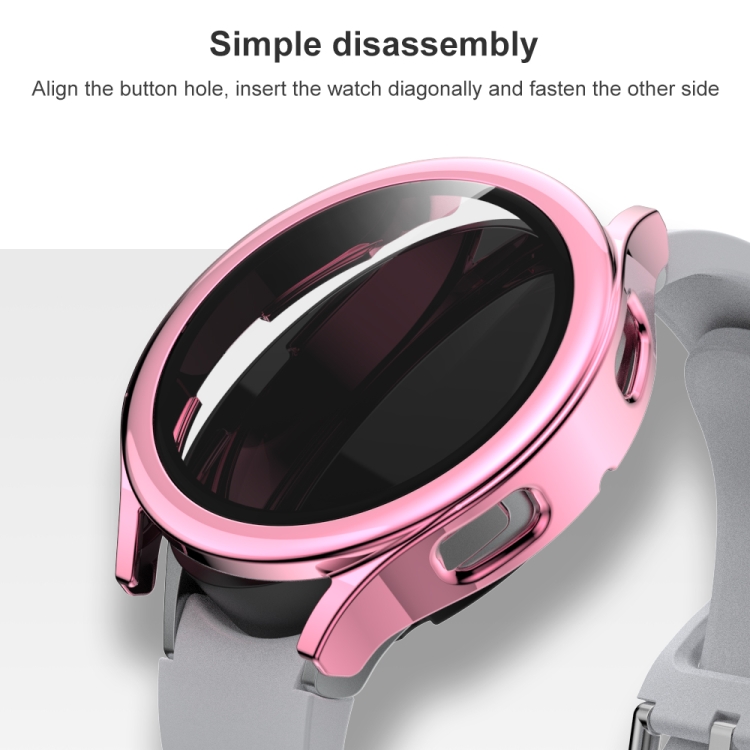 Funda para Samsung Galaxy Watch4 40 mm Galvanizado PC con Película de Vidrio Templado (Rosa)