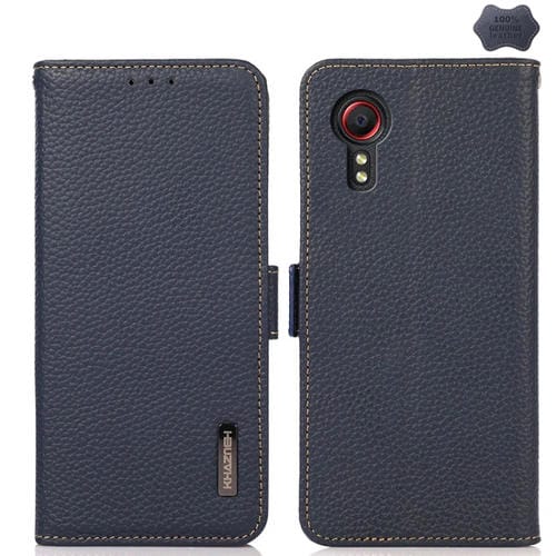 Funda para Teléfono Samsung Galaxy Xcover7 Khazneh Cuero Genuino Litchi Lateral Magnético (Azul)