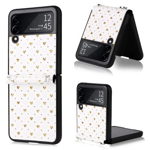 Funda para Samsung Galaxy Z Flip3 5G Colorful Love con Lanyard (Oro)