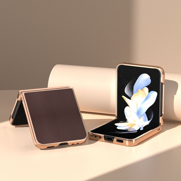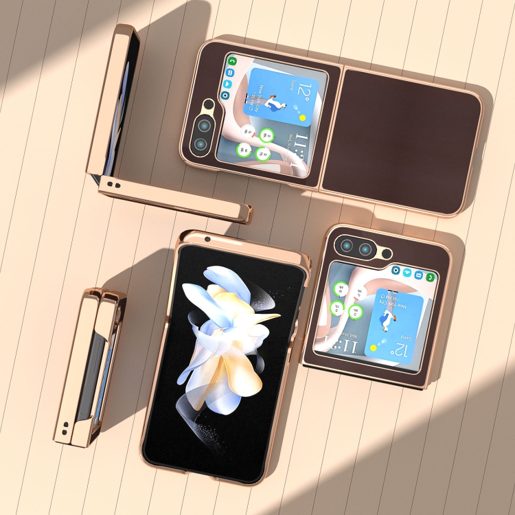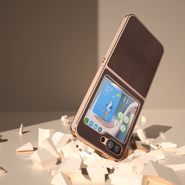 Funda de teléfono Samsung Galaxy Z Flip5 Xiaoya Series Cuero Genuino Nano Plating (Café)