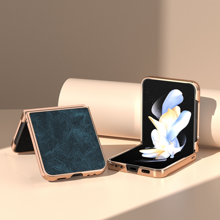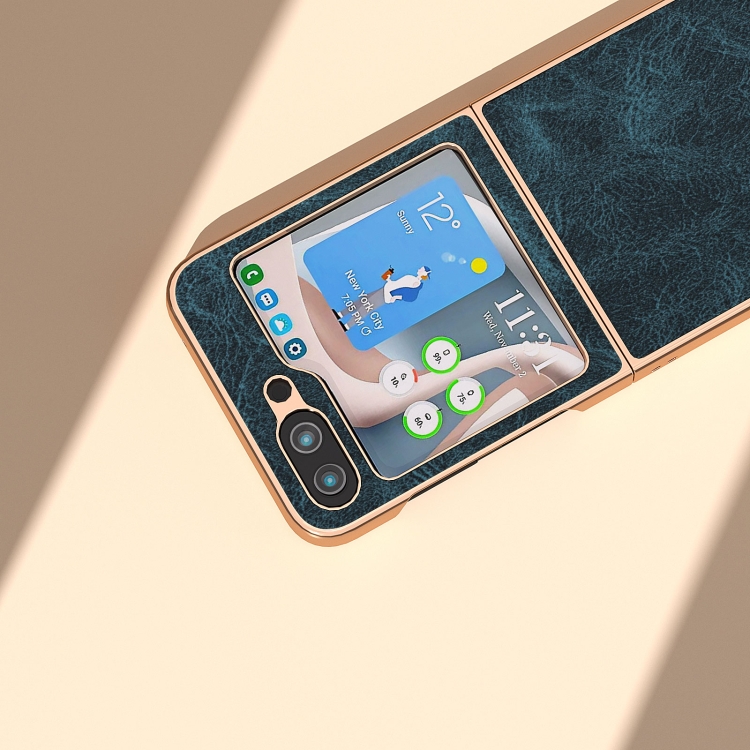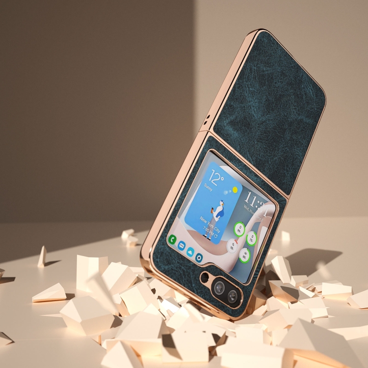 Funda para Samsung Galaxy Z Flip5 Nano Plating Dream Litchi Texture PU Phone Case (Azul)