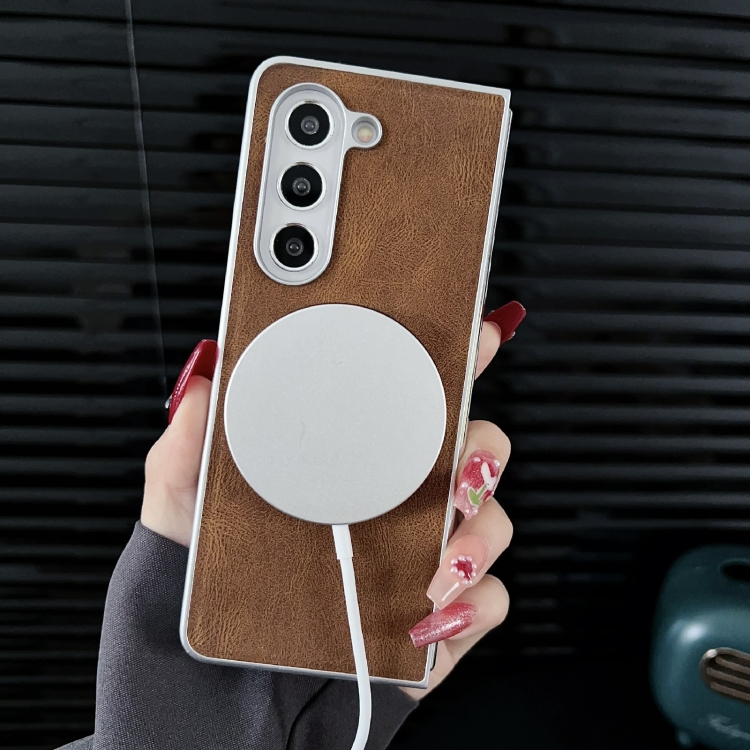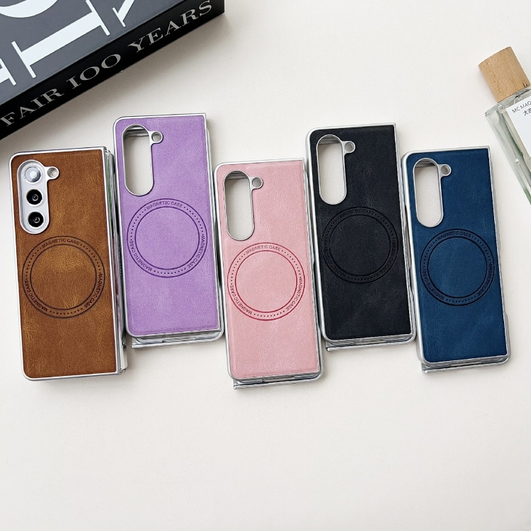 Funda para Teléfono Samsung Galaxy Z Fold5 Skin Feel Textura de Cuero Magsafe Pintura Nacarada (Azul)
