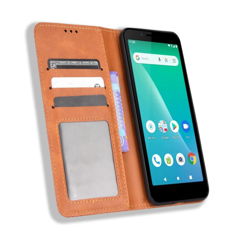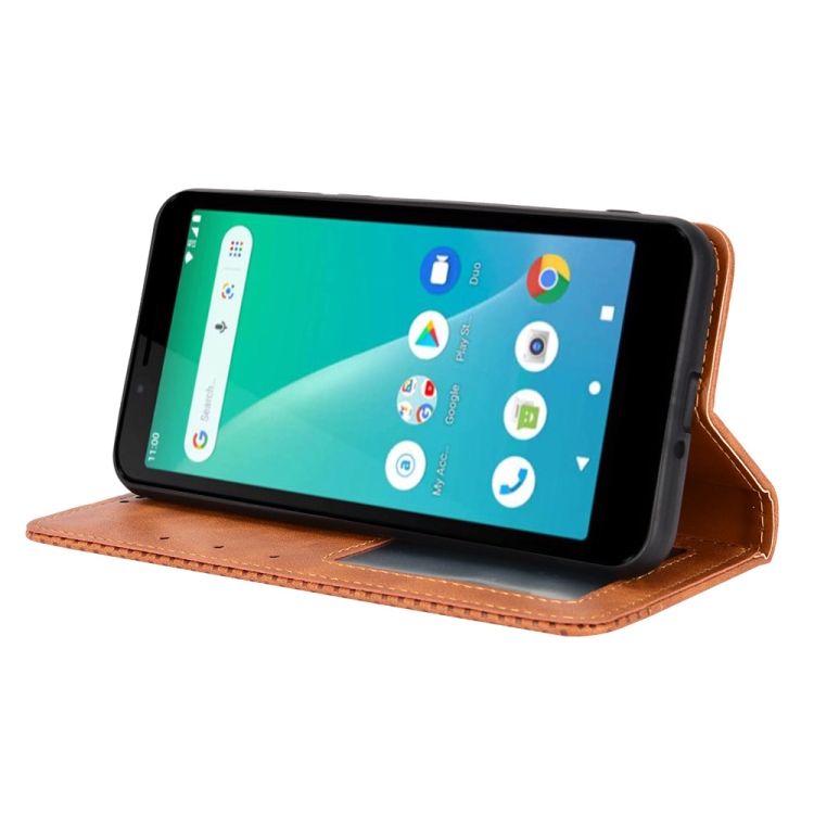 Funda Telefónica Schok Volt Sv55 / Sv55216 Hebilla Magnética Cuero Textura Retro (Marrón)