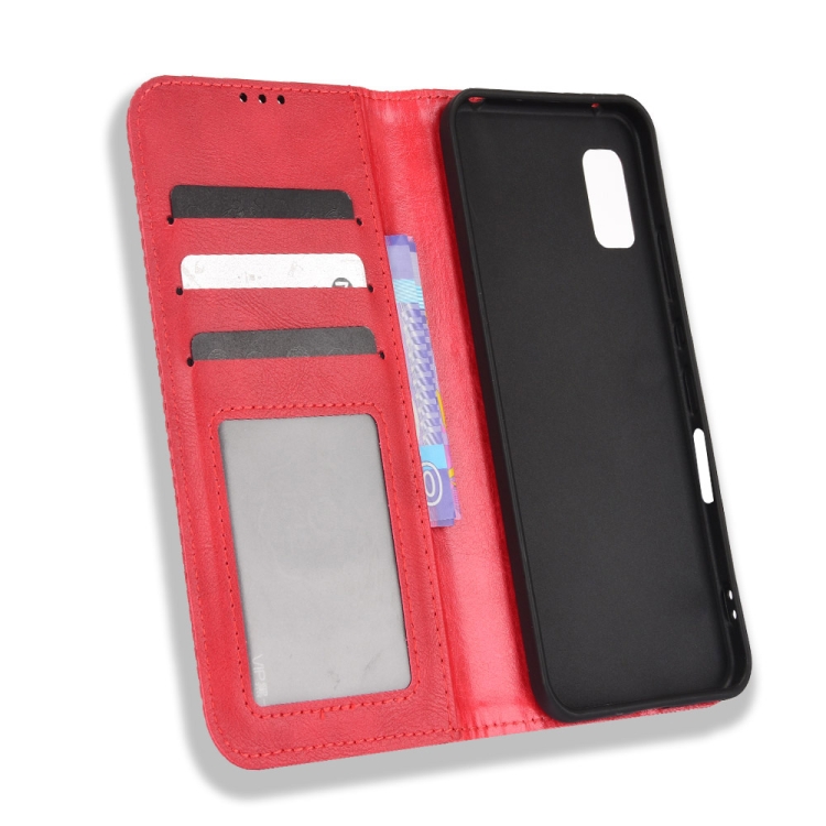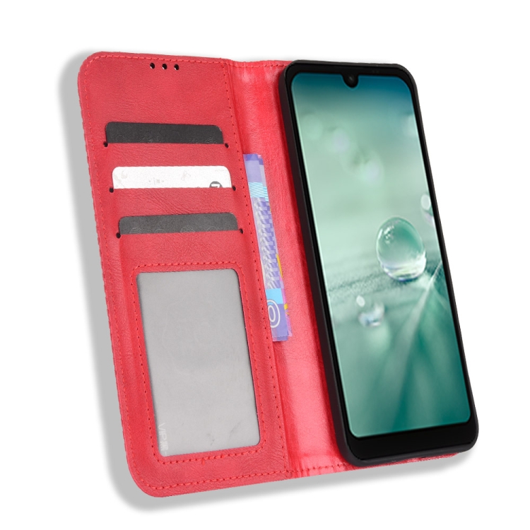 Funda para Sharp Aquos Wish con Hebilla Magnética y Textura Retro de Cuero (Rojo)