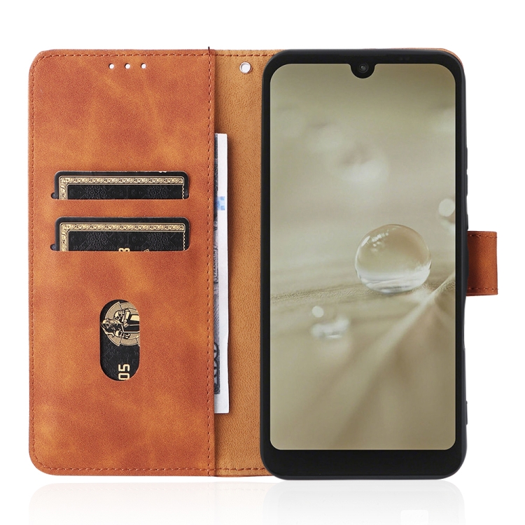Funda para Sharp Aquos Wish SHG06 con Hebilla Magnética y Textura de Piel PU (Marrón)