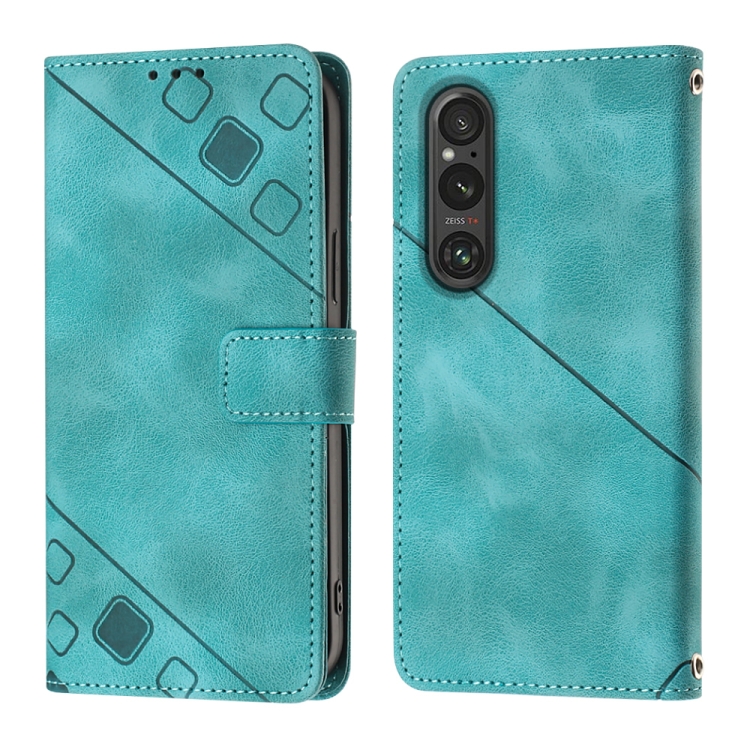 Estuche para Sony Xperia 1 V Skin-Feel de Cuero En Relieve (Verde)