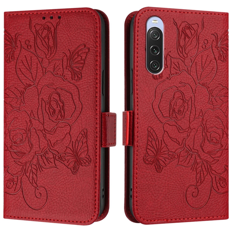- 1x Funda de Cuero Antirrobo para Sony Xperia 10 V 4G con Rfid y Relieve (Rojo)