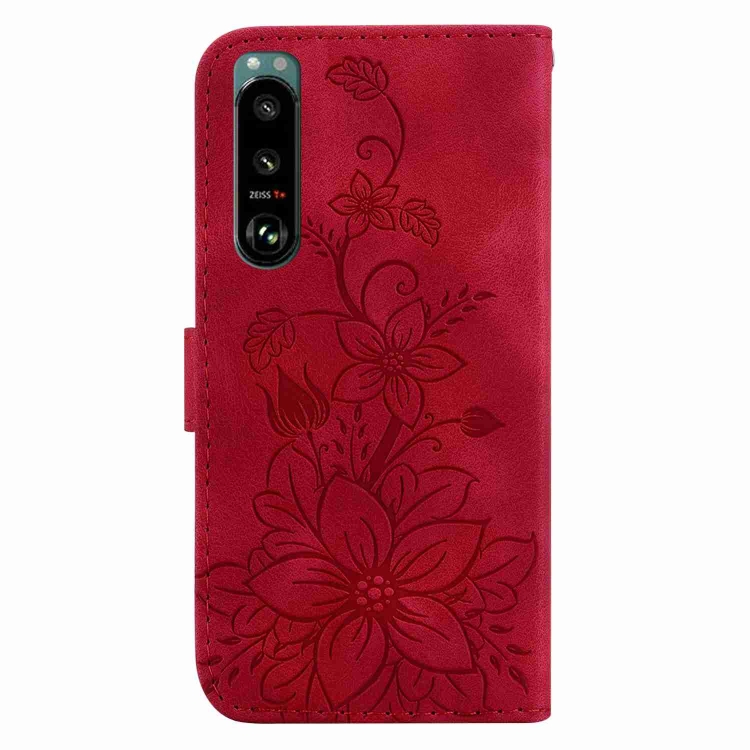 Funda de Cuero para Sony Xperia 5 III Lily en Relieve (Rojo)