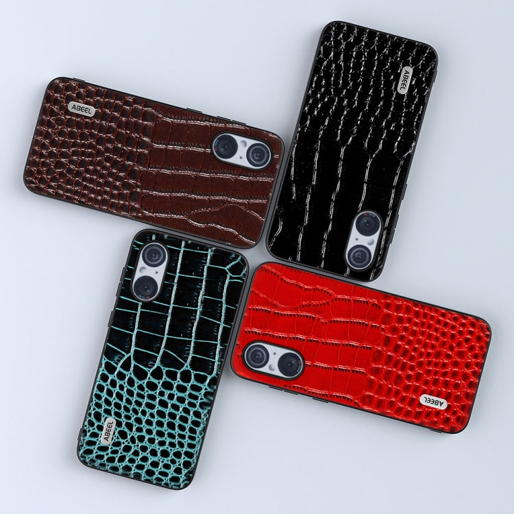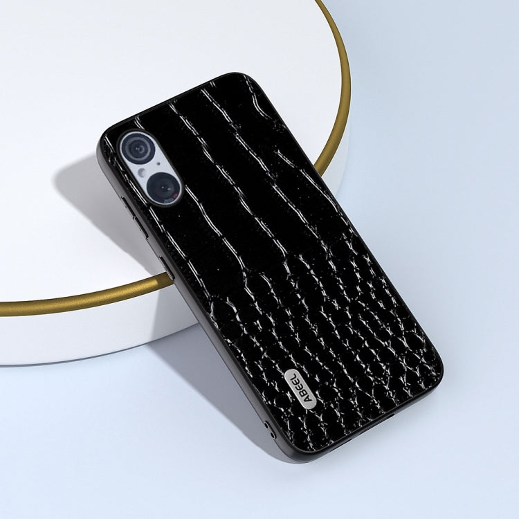 Funda para Sony Xperia 5 V Abeel Cuero Genuino con Patrón de Cocodrilo y Borde Negro (Negro)