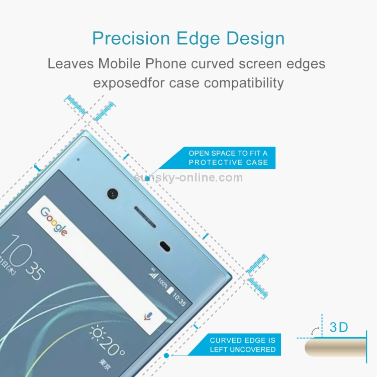 Protector de Pantalla Vidrio Templado Sony Xperia XZs 0.33mm 9H Dureza 3D Curvo (Transparente)